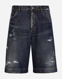In the “Sartoriale” collection, iconic Italian sartorial heritage is presented from a new perspective, made up of lines, silhouettes and details, concealed buttoning, geometric lapels, and jackets that have seen their proportions completely overhauled. The tale is a journey embarked upon to discover a new kind of tailoring that is perfect in terms of fit, with meticulous attention to detail, that strives to speak and represent the style of the wearer, through small - yet significant - details that will make every piece unique. Five-pocket denim shorts with abrasion details: • Blue • Regular fit • Fly-covered zipper and button fastening • Metal Dolce&Gabbana logo tag on the back • The item measures 60 cm on the outer leg and the hem is 34 cm wide on a size IT 48 • Made in Italy External composition: 100% Cotton