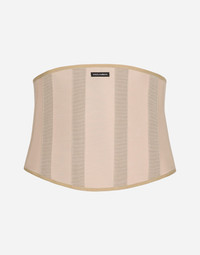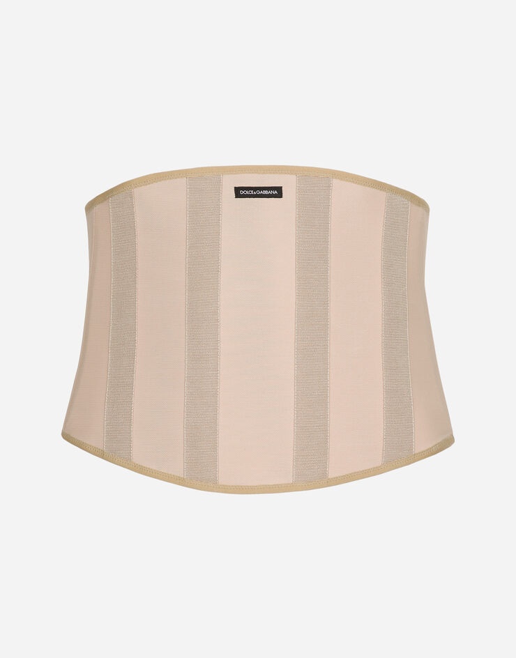 Marquisette corset with boning: • Gros-grain-covered boning • Adjustable hook-and-loop fastening • Dolce&Gabbana logo label • The item measures 27 cm in length on the front • Pink • Made in Italy Care And Details External composition: 84% Polyamide 16% Spandex