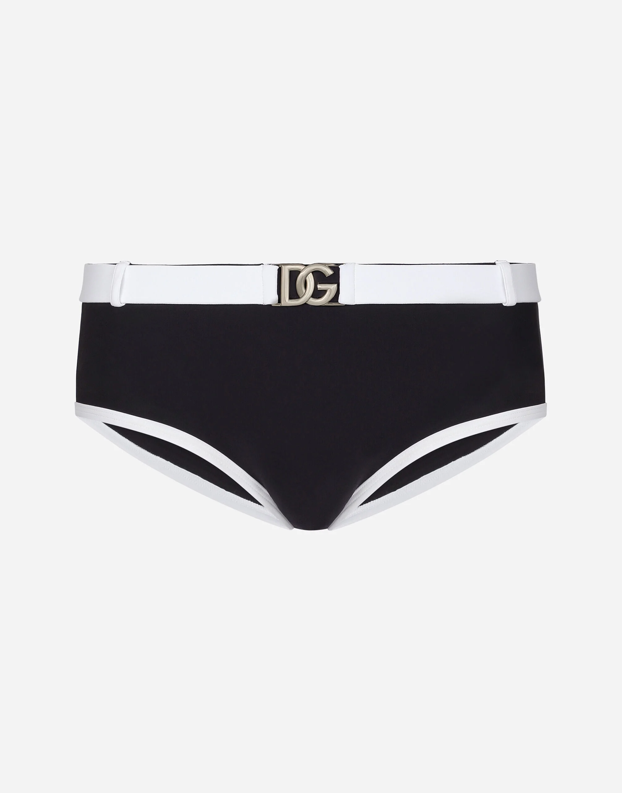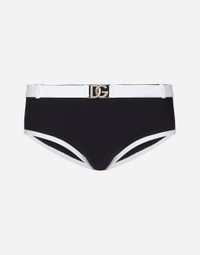 The Marina line has us dreaming of the Mediterranean sea and its myriad shades of blue, while also bringing weathered sailors to mind, yet with a contemporary edge. Aesthetic influences and clear lines, stormy sea Blue jackets, multi-pocket pieces, waterproof garments, anchor prints and materials that invite us to discover the “lighthouse keeper”. Fascinating, enigmatic and at times lonely, it tells the tale of a new masculine sensuality built with small yet precise proportions and attention to stylish detail. Brando David swim briefs in spandex technical fabric: • Blue • Contrasting white belt loops in the same fabric • Separate belt with DG logo buckle, inserted into the belt loops • Matching light nylon pouch with zipper • Made in Italy The difference in the print placement that you may find on this product is a feature of Dolce&Gabbana’s “Handmade” pieces. A detail that makes every garment or accessory unique and exclusive. External composition: 72% Polyamide 28% Spandex