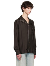 Loose-fit silk twill shirt. Piping throughout. · Open spread collar · Button closure · Logo embroidered at patch pocket · Vented side seams · Dropped shoulders · Single-button barrel cuffs · Twin pleats at back yoke Supplier color: Marrone/Grigio 100% silk. Made in Italy 242003M192006