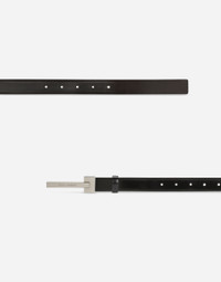 Fine and elegant, this brushed calfskin belt features a metal buckle with the Dolce&Gabbana logo. Brushed calfskin belt • Black • The belt strap is 25 mm in height • Dome popper fastening beneath the buckle and belt loop stop • Made in Italy External composition: 100% Calfskin Internal composition: 100% Calfskin