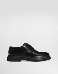 Brushed calfskin derby shoes: • Black • Day Classic shape • EVA outsole • Leather heel insole customized with label • DG crossed logo customization • Ruthenium electroplating • Item equipped with black cotton bag and black embossed box • Made in Italy External Composition: 100% Calfskin Internal Composition: 90% Lambskin, 10% Goatskin This product is made with leather from tanneries certified according to environmental standards.