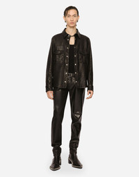 Bullskin shirt. • Regular fit • Kent collar • Long sleeves • Press-stud fastenings • Flap pockets with press-stud button • Buttoned cuffs • Lined • The piece measures 65 cm from the rear collar seam on a size IT 40 • The model is 185 cm tall and wears a size IT 40 • Made in Italy Care And Details External composition: 100% Bullskin Internal composition: 100% Viscose