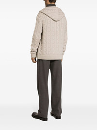 cable-knit hoodie Highlights - Light beige - Virgin wool-cashmere blend - Cable knit - Classic hood - Logo patch to the side - Front zip fastening - Long sleeves - Slip pockets to the sides - Straight hem - Ribbed trim - Lined Made in Italy Composition Virgin Wool 90%, Cashmere 10%