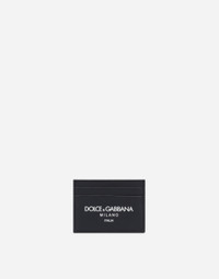 Practical and essential, the card holder fits comfortably in a pocket. Calfskin card holder with Dolce&Gabbana Milano logo: • Blue • Four front card slots and one on top • Measurements: H7.5 x W10 x D0.5 cm • Made in Italy External composition: 100% Calfskin Internal composition: 100% Viscose