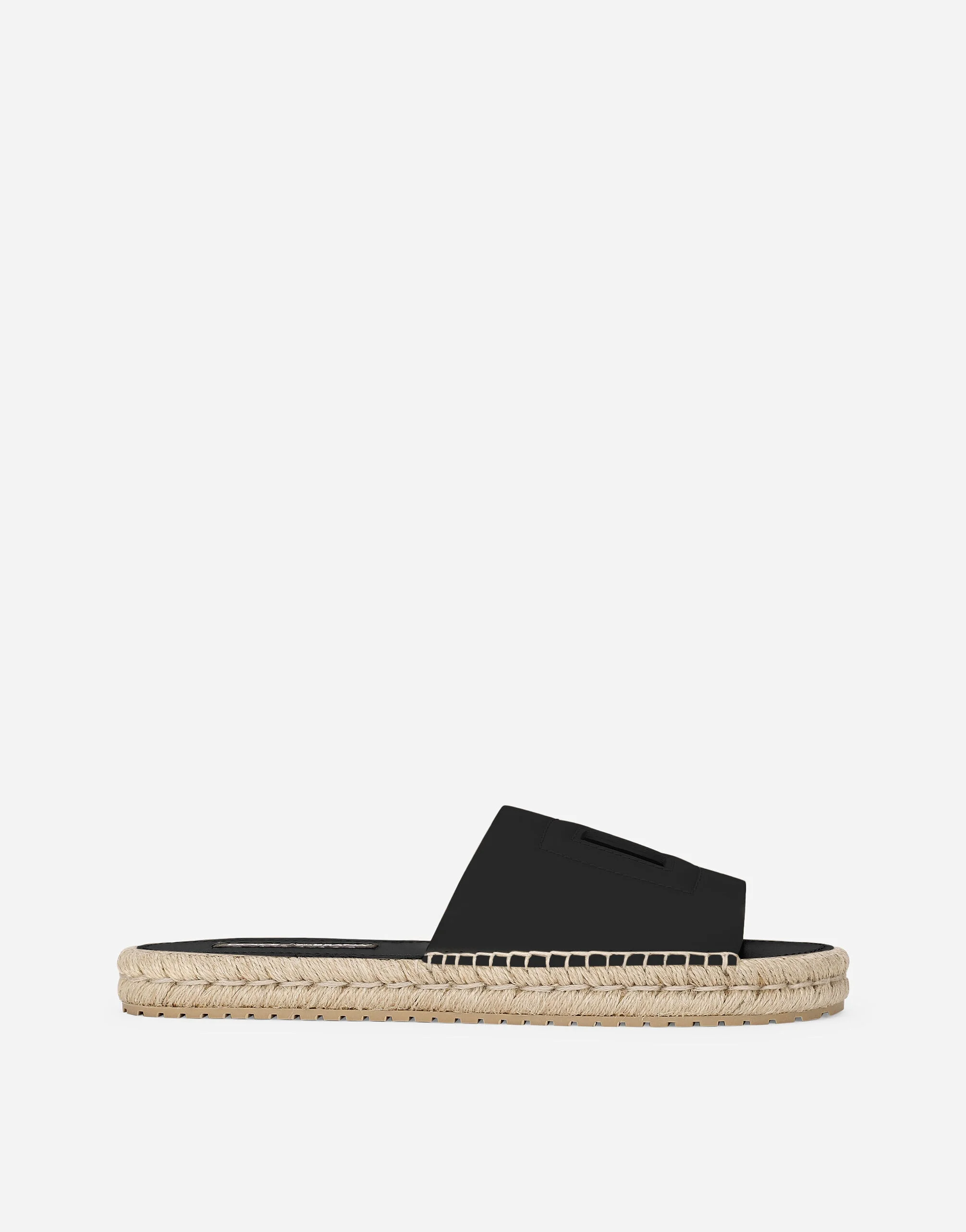Modern and sophisticated, these soft calfskin espadrille sliders feature the 3D-effect cut-out DG logo. Calfskin espadrille sliders with DG logo: • Black • Rope bottom assembly • Branded rubber sole • Item comes with a branded dust bag • Made in Italy External composition: 100% Calfskin Internal composition: 100% Calfskin