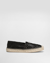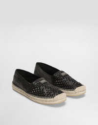 Modern and sophisticated, these espadrilles come in soft woven calfskin with a metal tag bearing the Dolce&Gabbana logo. Calfskin espadrilles with metal tag: • Black • Rope bottom assembly • Branded rubber sole • Item comes with a branded dust bag • Made in Italy External composition: 100% Goatskin Internal composition: 87% Lambskin 13% Goatskin