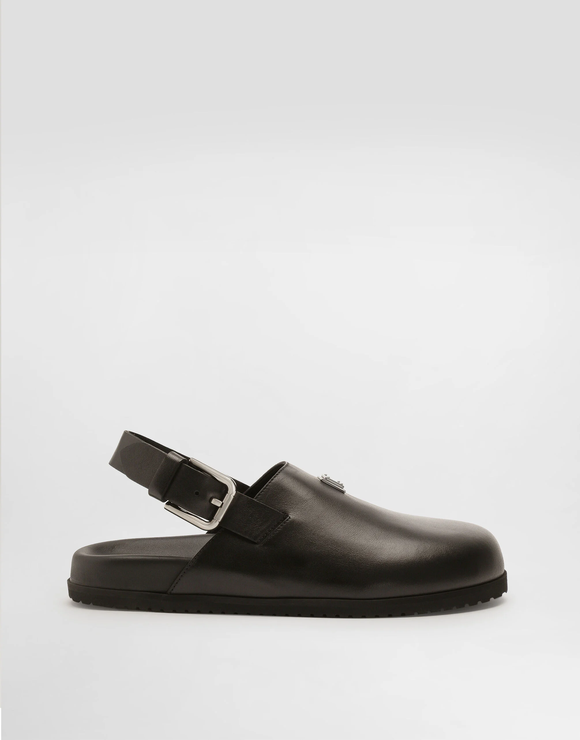 Calfskin mules embellished with ruthenium-plated metal logo tag: • Black • Adjustable calfskin strap • Calfskin footbed with branded label • Branded rubber sole • Item comes with a branded dust bag • Made in Italy Care And Details External composition: 100% Calfskin Internal composition: 100% Lambskin