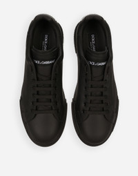 These calfskin nappa Portofino sneakers with micro-injected Dolce&Gabbana lettering feature an understated and sophisticated shape. ? Calfskin nappa upper and branded heel cup ? Flat laces ? Calfskin footbed with branded label ? Branded rubber bottom assembly ? Item comes with themed packaging ? Made in Italy External composition: 100% Calfskin Internal composition: 58% Lambskin 24% Polyester 10% Goatskin 8% Natural Rubber
