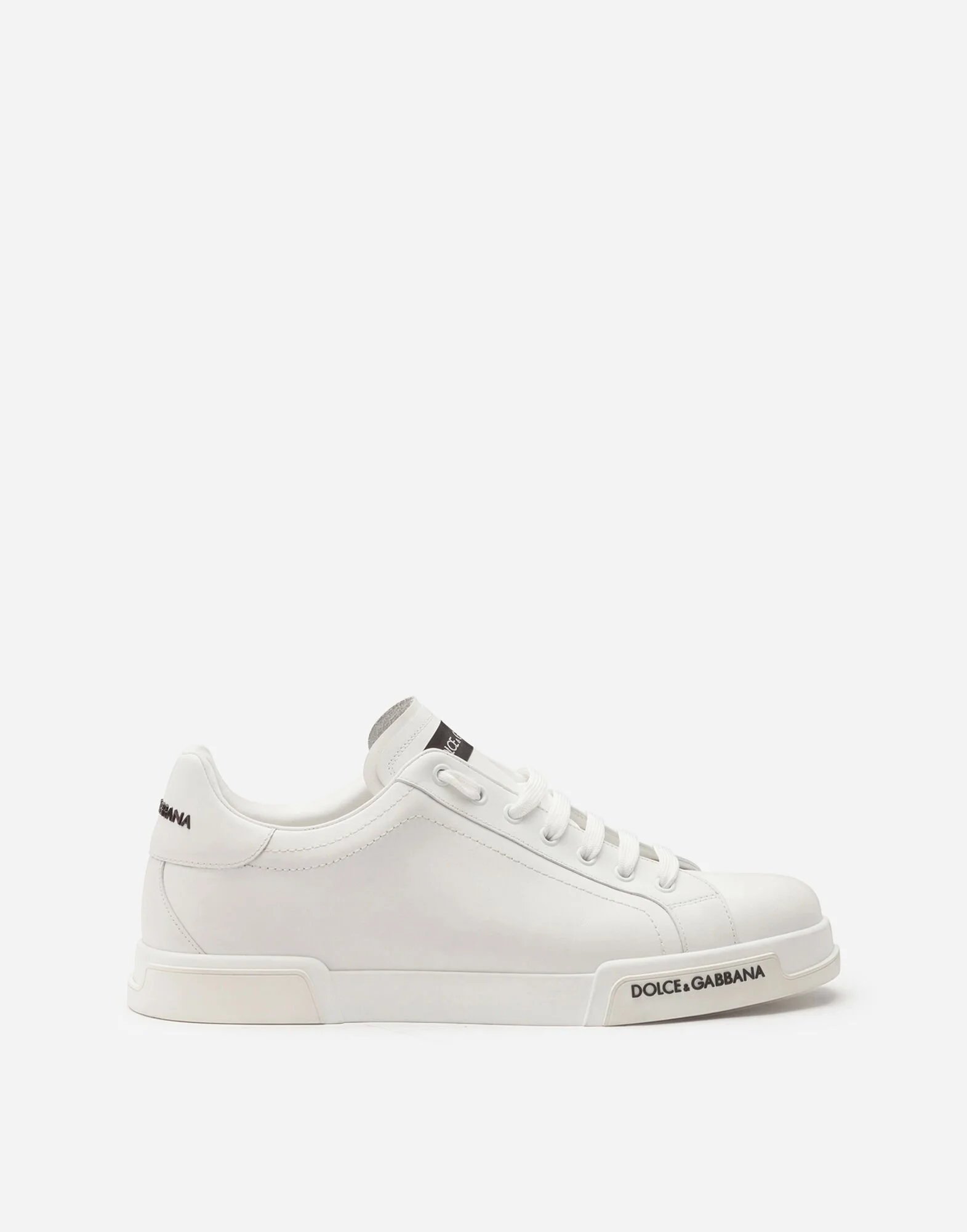 These calfskin nappa Portofino sneakers with micro-injected Dolce&Gabbana lettering feature an understated and sophisticated shape. • Calfskin nappa upper and branded heel cup • Flat laces • Calfskin footbed with branded label • Branded rubber sole • Item comes with themed packaging • Made in Italy External composition: 100% Calfskin Internal composition: 58% Lambskin 24% Polyester 10% Goatskin 8% Natural Rubber