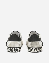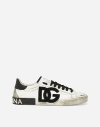 Calfskin Portofino Vintage sneakers with DG logo patch: • White • Contrasting calfskin heel cup • Flat laces • Calfskin footbed with branded label • Rubber bottom with branded spoiler • Branded rubber sole • Item comes with a branded dust bag • Made in Italy Care And Details External composition: 100% Calfskin