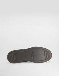 Understated and versatile, these new Portofino Yacht shoes feature a leather sole. Complete with the Dolce&Gabbana-branded spoiler. Tumbled calfskin Portofino Yacht sneakers: • Black and Gray • Calfskin upper • Branded heel cup • Flat laces • Calfskin footbed with branded label • Leather bottom assembly • Item comes with a dust bag • Made in Italy External composition: 75% Calfskin 25% Lambskin Internal composition: 90% Lambskin 10% Goatskin
