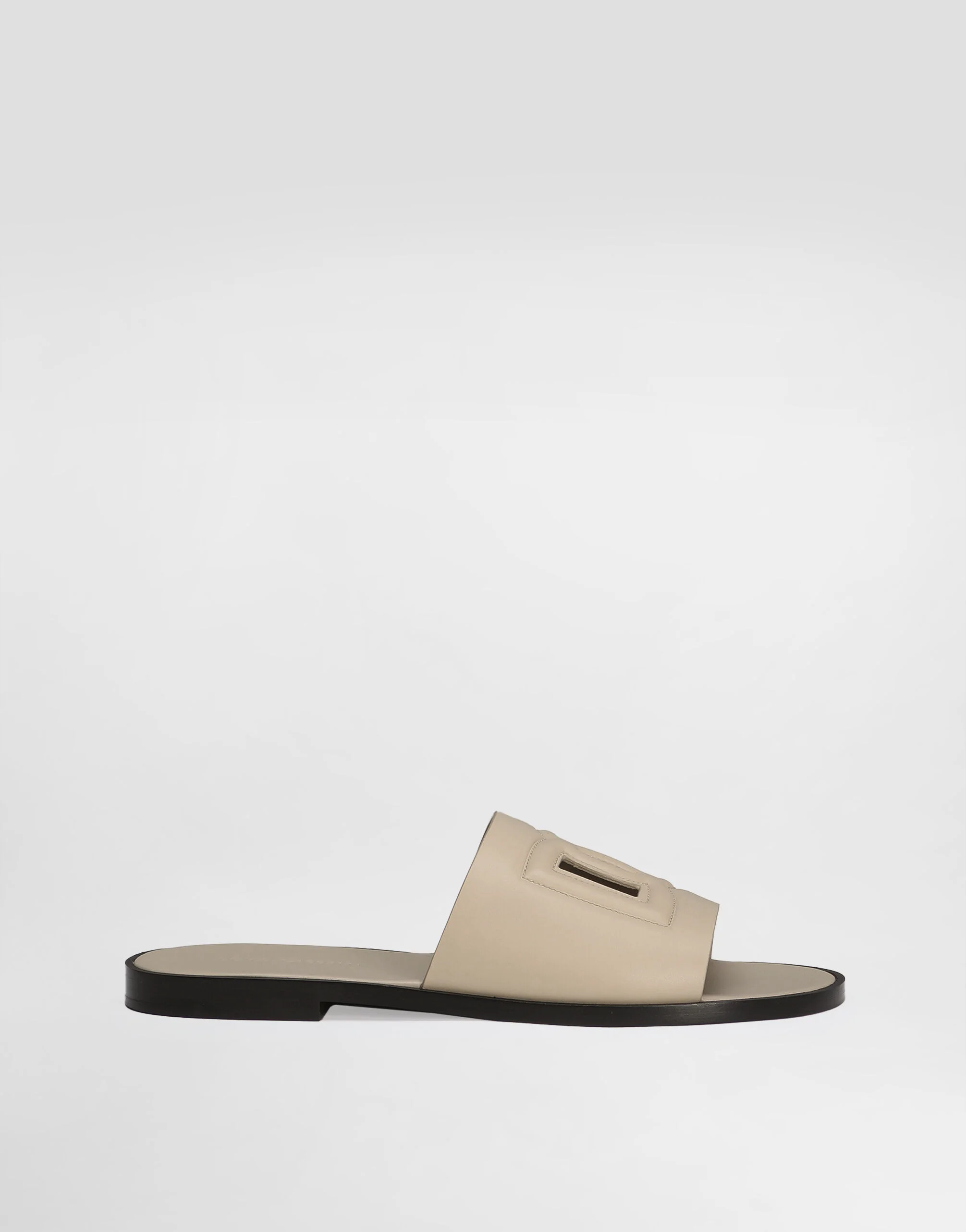 A symbol of craftsmanship and attention to detail; the new slide features the DG logo created with a high-frequency technique that gives it a 3D aesthetic and volume. Calfskin slides with DG logo: � Beige � Calfskin insole with branded label � Branded leather sole � Item comes with a dust bag � Made in Italy External composition: 100% Calfskin Internal composition: 100% Goatskin