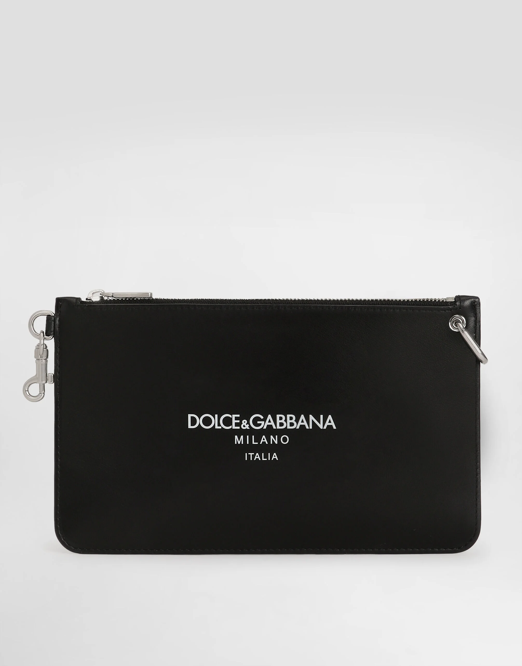 Practical and versatile, this calfskin toiletry bag features the leather tag with the Dolce&Gabbana Milano logo. Calfskin toiletry bag: • Black • Zipper with branded slider • Fabric lining • Item comes with a branded dust bag • Measurements: H14 x W24 x D1 cm • Made in Italy External composition: 100% Calfskin Internal composition: 85% Cotton 10% Acrylic 5% Calfskin