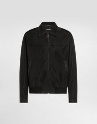 The DNA Men's Collection reimagines daily wear with bold contrasts, meticulous details, and innovative silhouettes. Outerwear stands out with clean lines and high-tech materials, merging sportiness with sophistication in sweaters, sweatshirts, and trousers. A striking color palette, including Black Sicily, caramel, cream, burgundy, and stone gray, pairs with iconic prints like Leopard and Polka dots, enhancing the collection's authentic and refined look. Canvas bomber jacket with a metal tag and the Dolce&Gabbana logo: • Black • Regular fit • Front zipper fastening • Shirt collar • Tab details on the shoulders • Side pockets and welt breast pockets with zipper • Stretch knit hem and sleeves • Lined • The piece measures 73 cm from the rear collar seam on a size IT 48 • Made in Italy External composition: 100% Polyester