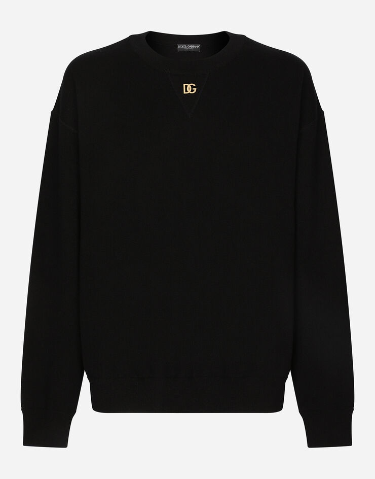 Round-neck cashmere sweater with metal DG logo: • Oversize fit • 12-gauge plain knit • The piece measures 72 cm from the shoulder seam on a size M • The model is 185 cm tall and wears a size M • Made in Italy Care And Details External composition: 100% Cashmere