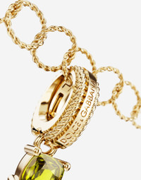 The charm is illuminated by beautiful natural gems, such as topazes, garnets, amethysts, citrines, peridots, tourmalines, and beryls: the countless shades of their colors, dominated by blue, green, purple, red, pink, and yellow, evoke the warm and sunny atmospheres of Sicily. The different shapes and various cuts of the crystals are also emphasized by the settings, which alternate twisted wire work and smooth surfaces. Light reflects and refracts on the facets of the gems and the gold in a always surprising way, maximizing the brilliance of the charms. Technical features: Gold 750/000. Gems: 1 blue "London" topaz cushion-cut, 1 dark purple round amethyst, 1 reddish-orange round hessonite garnet, 1 pale yellow round citrine, 1 yellowish-green cushion-cut peridot. Made in Italy. Complete the look with the twisted wire chain in yellow gold and create your favorite word. For a better fit, we recommend a distance of 5 empty rings between the pendants. Yellow 18 kt Gold