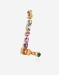 The charm is illuminated by beautiful natural gems, such as topazes, garnets, amethysts, citrines, peridots, tourmalines, and beryls: the countless shades of their colors, dominated by blue, green, purple, red, pink, and yellow, evoke the warm and sunny atmospheres of Sicily. The different shapes and various cuts of the crystals are also emphasized by the settings, which alternate twisted wire work and smooth surfaces. Light reflects and refracts on the facets of the gems and the gold in a always surprising way, maximizing the brilliance of the charms. Technical features: Gold 750/000. Gems: 1 intense purple oval cabochon amethyst, 1 drop-shaped purple amethyst, 1 cushion reddish-purple rhodolite garnet, 1 square quartz with truncated corners, 1 oval intense yellow citrine, 1 oval light yellow citrine, 1 round blue/green tourmaline, 1 oval cabochon green peridot, 1 round Swiss topaz, 1 rectangular blue London topaz with truncated corners. Made in Italy. Complete the look with the twisted wire chain in yellow gold and create your favorite word. For a better fit, we recommend a distance of 5 empty rings between the pendants. Yellow 18 kt Gold