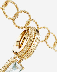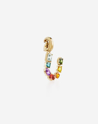 The charm is illuminated by beautiful natural gems, such as topazes, garnets, amethysts, citrines, peridots, tourmalines, and beryls: the countless shades of their colors, dominated by blue, green, purple, red, pink, and yellow, evoke the warm and sunny atmospheres of Sicily. The different shapes and various cuts of the crystals are also emphasized by the settings, which alternate twisted wire work and smooth surfaces. Light reflects and refracts on the facets of the gems and the gold in a always surprising way, maximizing the brilliance of the charms. Technical features: Gold 750/000. Gems: 1 rectangular "Sky" blue topaz with truncated corners, 1 square "Swiss" blue topaz in cushion cut, 1 purple drop-shaped amethyst, 1 oval cabochon red-orange hessonite garnet, 1 round orange "Madera" quartz, 1 oval yellow citrine, 1 oval green tourmaline. Made in Italy. Complete the look with the twisted wire chain in yellow gold and create your favorite word. For a better fit, we recommend a distance of 5 empty rings between the pendants. Yellow 18 kt Gold