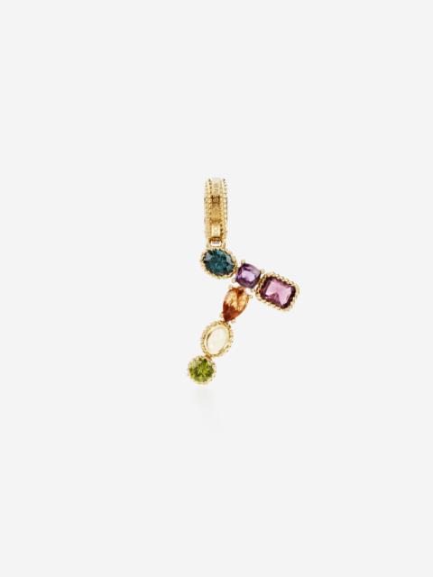 The charm is illuminated by beautiful natural gems, such as topazes, garnets, amethysts, citrines, peridots, tourmalines, and beryls: the countless shades of their colors, dominated by blue, green, purple, red, pink, and yellow, evoke the warm and sunny atmospheres of Sicily. The different shapes and various cuts of the crystals are also emphasized by the settings, which alternate twisted wire work and smooth surfaces. Light reflects and refracts on the facets of the gems and the gold in a always surprising way, maximizing the brilliance of the charms. Technical features: Gold 750/000. Gems: 1 light blue oval cabochon "Swiss" topaz, 1 round "London" blue topaz, 1 square cushion purple amethyst, 1 oval orange "Madera" quartz, 1 square cushion yellow citrine, 1 rectangular hessonite garnet with truncated corners in reddish-orange, 1 round reddish-violet rhodolite garnet, 1 round green/yellow peridot, 1 rectangular green tourmaline with truncated corners. Made in Italy. Complete the look with the twisted wire chain in yellow gold and create your favorite word. For a better fit, we recommend a distance of 5 empty rings between the pendants. Yellow 18 kt Gold