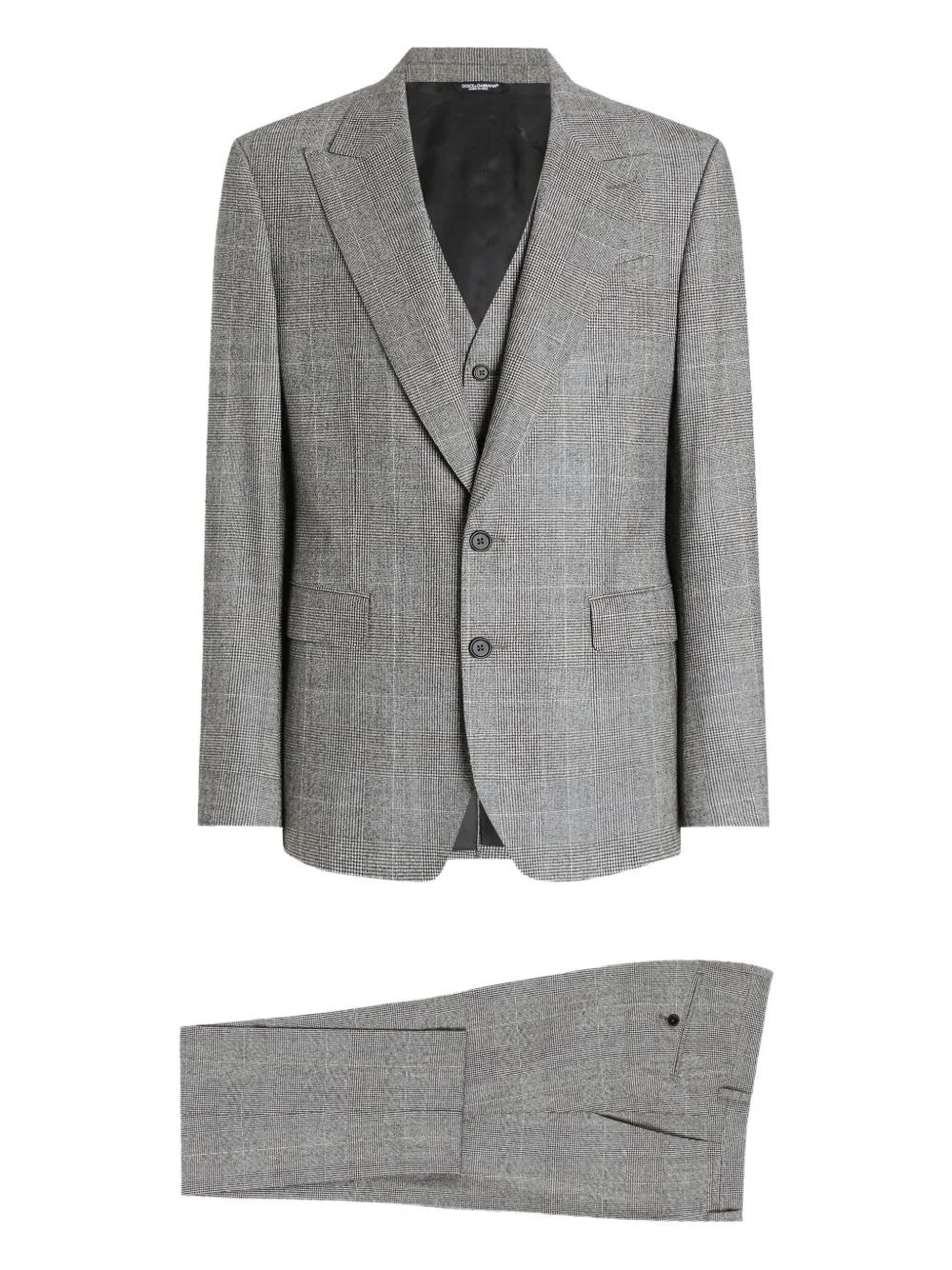 check-pattern three-piece suit Highlights - Grey - Check pattern - Three-piece suit - Button fastening - Welt pockets Made in Italy Composition Outer: Virgin Wool 96%, Elastane 4% Lining: Viscose 100% Washing instructions Read Manufacturer Guidelines