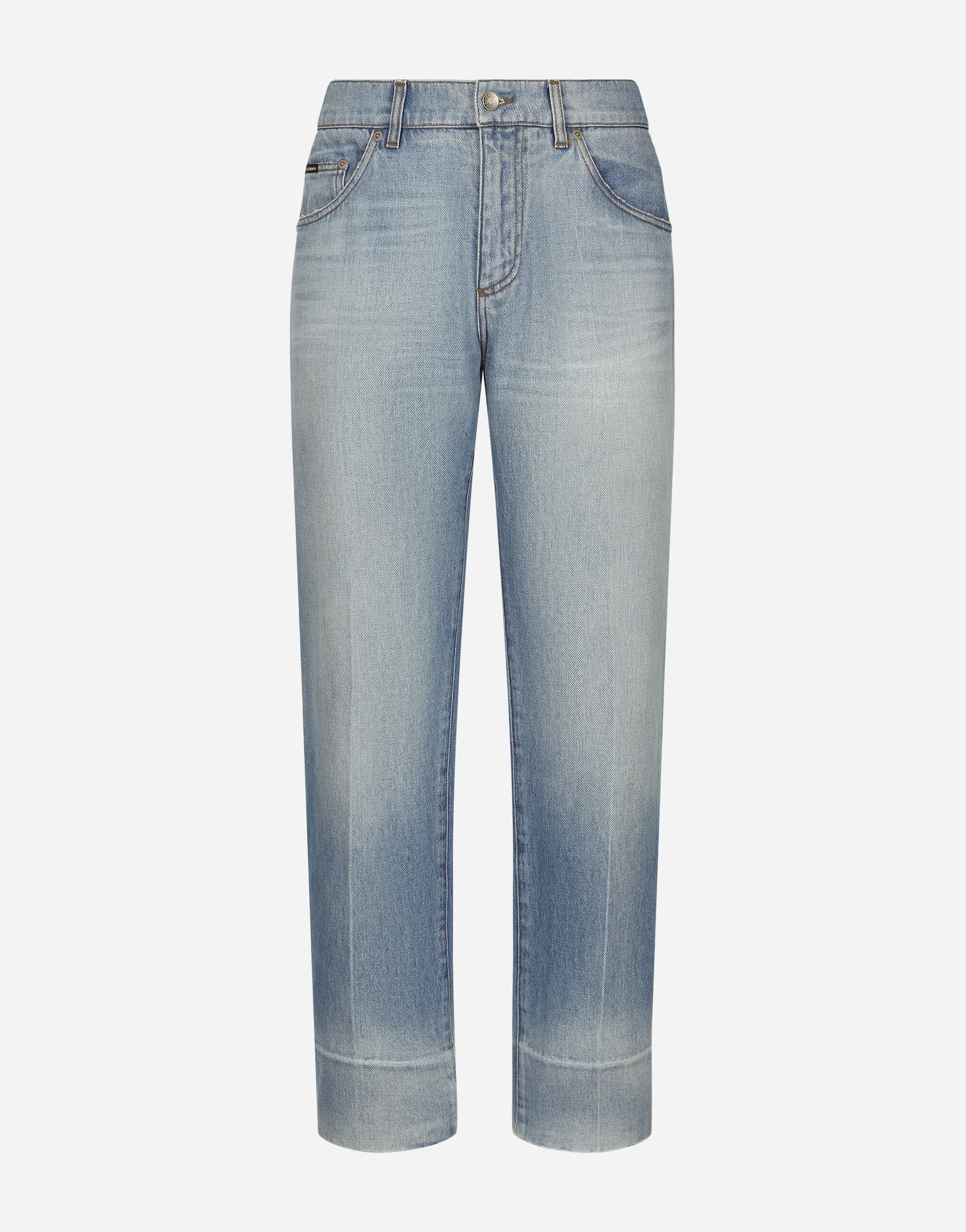 Classic five-pocket denim jeans: • Blue • Regular fit, wide hem • Fly-covered zipper and button fastening • Metal Dolce&Gabbana logo tag on the back • The item measures 105 cm on the outer leg and the hem is 21 cm wide on a size IT 48 • Made in Italy Classic five-pocket denim jeans: • Blue • Regular fit, wide hem • Fly-covered zipper and button fastening • Metal Dolce&Gabbana logo tag on the back • The item measures 105 cm on the outer leg and the hem is 21 cm wide on a size IT 48 • Made in Italy External composition: 100% Cotton