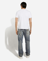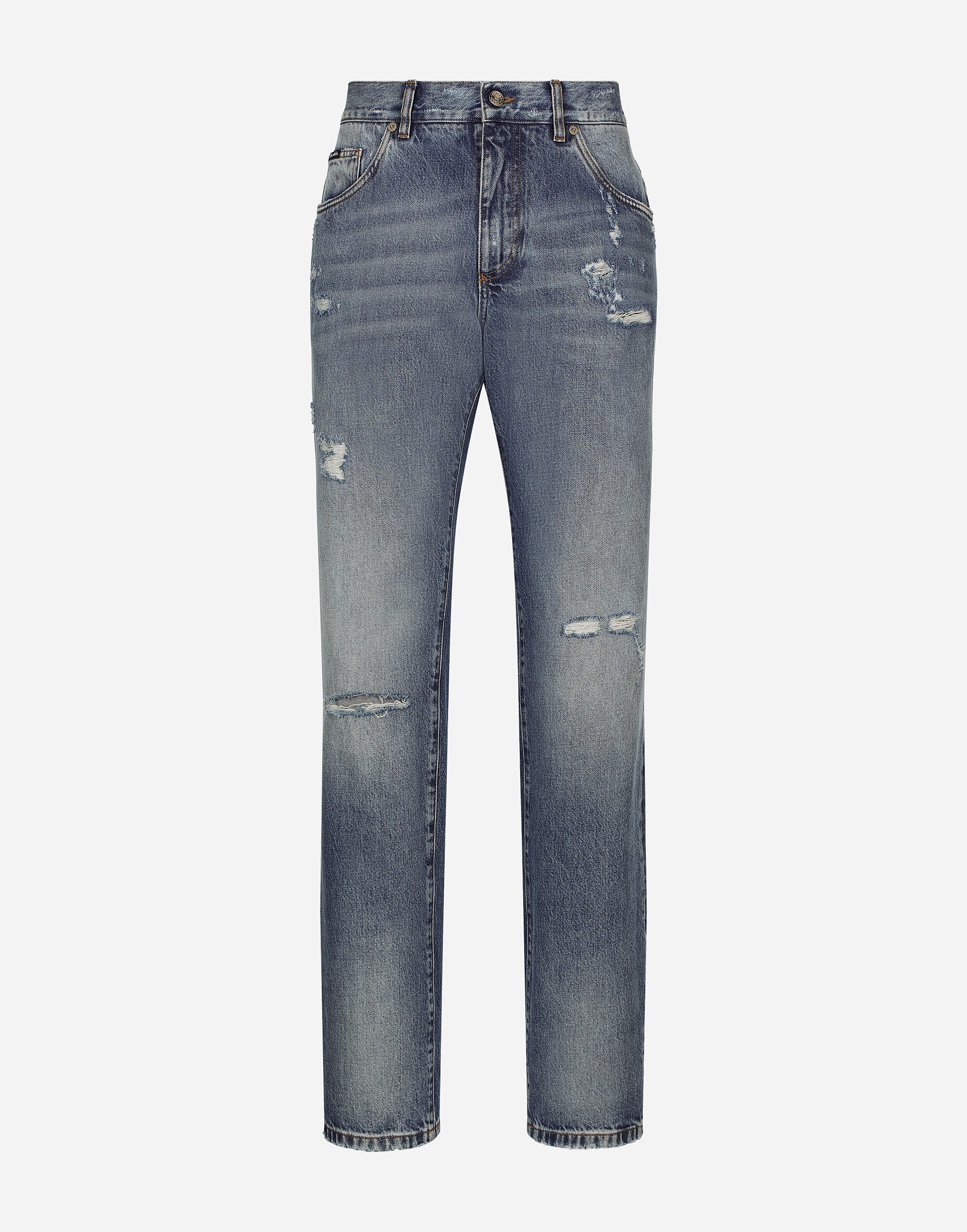 Classic five-pocket denim jeans with abrasions: • Blue • Regular fit • Fly-covered zipper and button fastening • Metal Dolce&Gabbana logo tag on the back • The item measures 110 cm on the outer leg and the hem is 21 cm wide on a size IT 48 • Made in Italy Classic five-pocket denim jeans with abrasions: • Blue • Regular fit • Fly-covered zipper and button fastening • Metal Dolce&Gabbana logo tag on the back • The item measures 110 cm on the outer leg and the hem is 21 cm wide on a size IT 48 • Made in Italy External composition: 100% Cotton