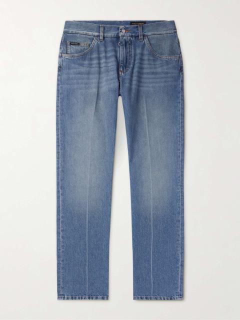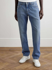 Dolce&Gabbana’s jeans are appliqued with both a branded patch on the waistband and engraved plaque on the back pocket. They’re cut from denim that’s faded and whiskered for a worn-in feel and have straight legs with pressed creases. Size & Fit - Fits true to size. Take your normal size - Regular-straight leg, mid-rise style - Mid-weight, non-stretchy denim - Model is shown wearing a 30 - Model measures: waist size 30, height 6'2"/ 188cm Details & Care - Blue denim - Button and zip fastening - 100% cotton - Dry clean