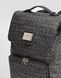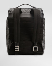 Past and present meet to give rise to a vision and an innovative interpretation of our archives. Practical and spacious, this coated fabric backpack features the all-over jacquard Dolce&Gabbana logo. Coated jacquard backpack: • Black • Branded tag in ruthenium-plated metal • Calfskin top handle • Front flap with concealed magnetic fastening and calfskin drawstring • Front pocket with zipper featuring double branded slider • Adjustable tape shoulder straps with calfskin details • Fabric lining and flat pocket • Item comes with a branded dust bag • Measurements: H39 x W27 x D16 cm • Made in Italy External composition: 30% Cotton 25% Polyester 20% Polyurethane 15% Nylon 5% Viscose 5% Calfskin Internal composition: 60% Cotton 15% Polyurethane 10% Polyester 10% Calfskin 5% Acrylic