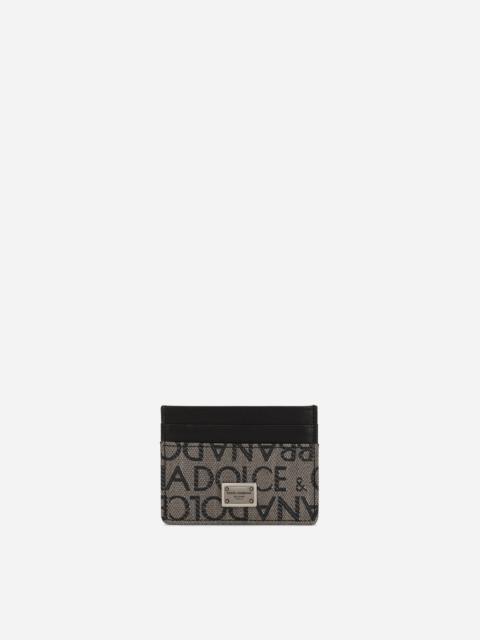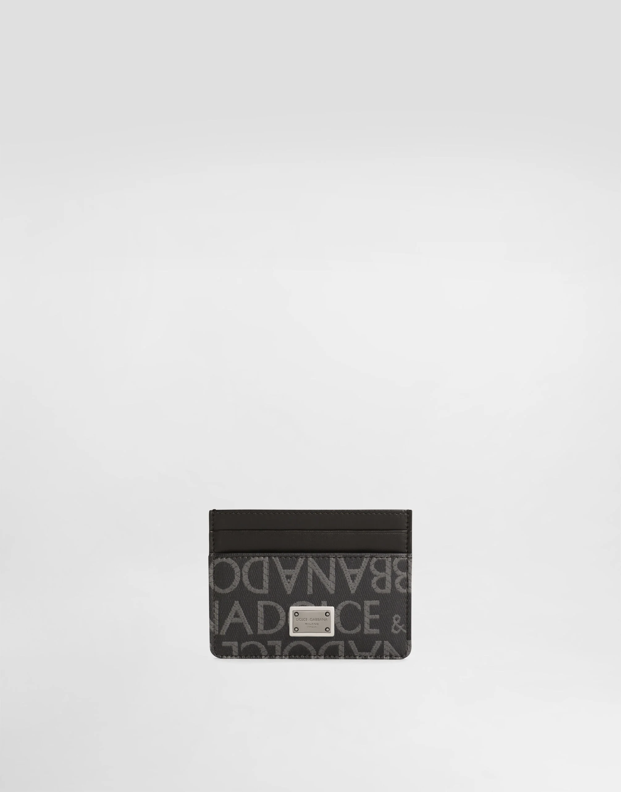 Past and present meet to give rise to a vision and an innovative interpretation of our archives. Perfect for comfortably slipping into your pocket, this coated fabric credit card features the all-over jacquard Dolce&Gabbana logo. Coated fabric card holder with the all-over jacquard Dolce&Gabbana logo: • Black • Branded tag in ruthenium-plated metal • Four front card slots and one on top • Measurements: H7.5 x W10 x D0.5 cm • Made in Italy External composition: 55% Calfskin 25% Cotton 10% Polyester 10% Polyurethane Internal composition: 100% Viscose