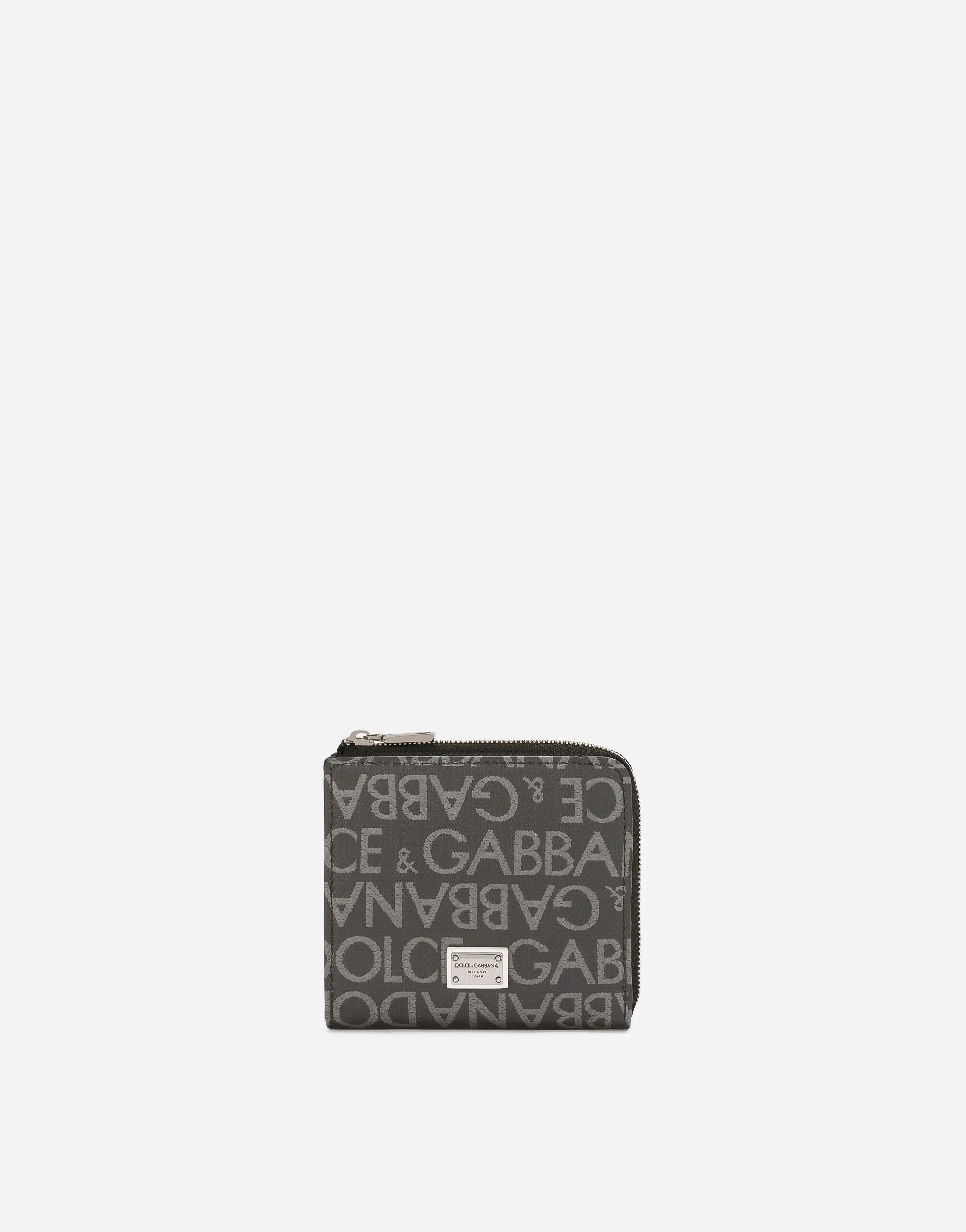 Past and present meet to give rise to a vision and an innovative interpretation of our archives. This coated fabric card holder features the all-over jacquard Dolce&Gabbana logo. Coated fabric card holder with the all-over jacquard Dolce&Gabbana logo: • Black • Branded tag in ruthenium-plated metal • Zipper fastening with branded slider • Coin pocket • Six card slots • Measurements: H10 x L11 x D1 cm • Made in Italy External composition: 47% Cotton 39% Polyurethane 14% Polyester Internal composition: 80% Calfskin 20% Viscose