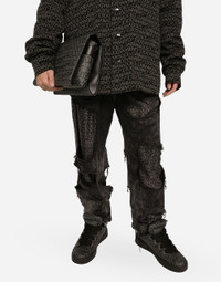Practical and versatile, this coated fabric crossbody bag features the all-over jacquard Dolce&Gabbana logo. Coated jacquard fabric crossbody bag with all-over Dolce&Gabbana logo: • Black • Top fastening with concealed double magnetic fastening • Triple-compartment construction • Adjustable and detachable tape strap with calfskin details • Nappa leather lining, a zipped pocket with branded slider, a flat pocket and a card slot compartment • Item comes with a branded dust bag • Measurements: H19 x L30 x D13.5 cm • Made in Italy External composition: 90% Calfskin 10% Nylon Internal composition: 100% Lambskin