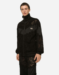 High-neck cordonetto lace and technical jersey sweatshirt: • Regular fit • Zipped welt pockets • Stretch knit jacquard hem, neck and cuffs • The piece measures 69 cm from the rear collar seam on a size IT 48 • The model is 185 cm tall and wears a size IT 48 • Made in Italy Care And Details External composition: 50% Cotton 41% Viscose 9% Polyamide