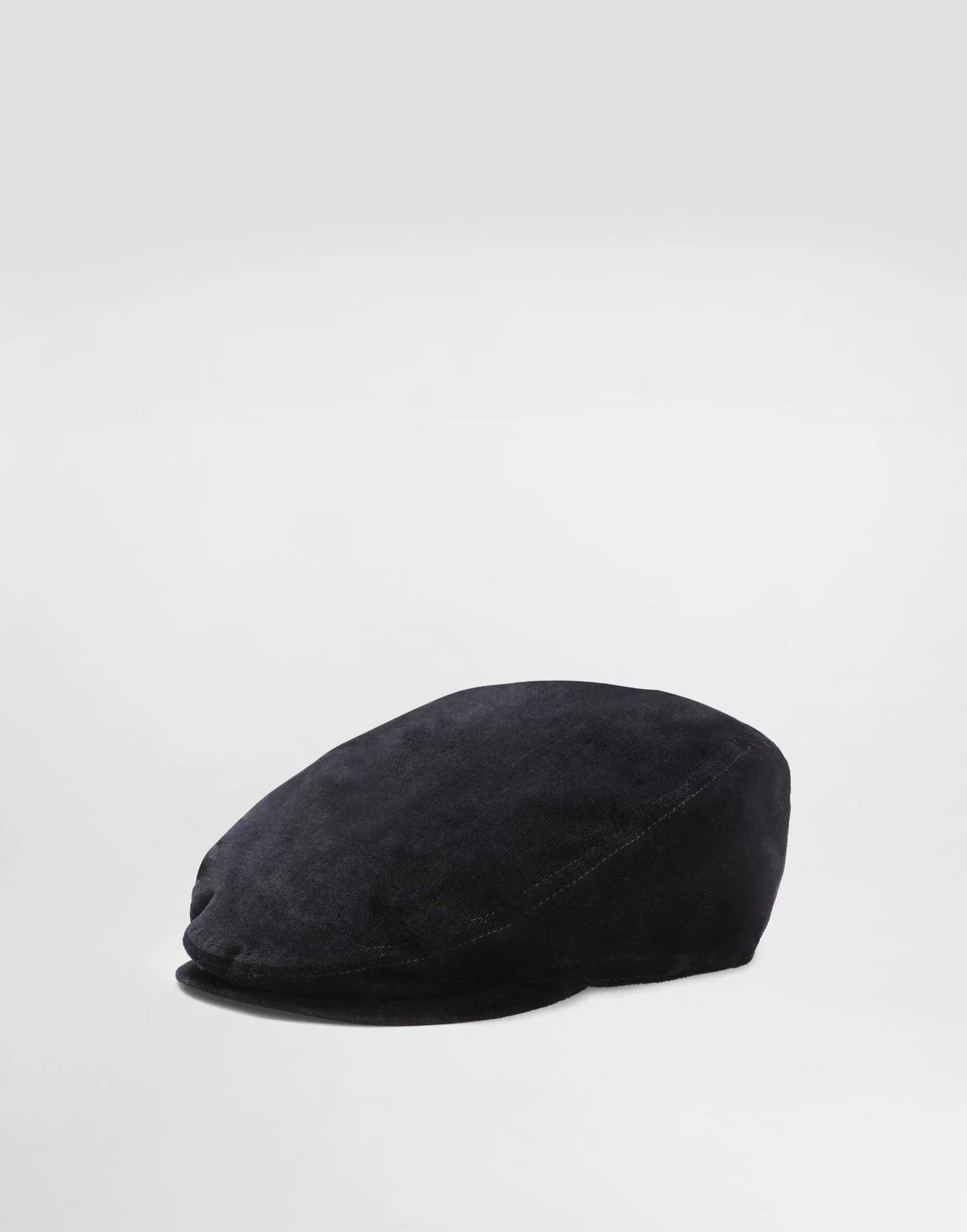 This velvet flat cap is the perfect accessory to add a touch of elegance and style to your everyday look. Made of high-quality materials, it offers comfort and sophistication in a classic design. Velvet flat cap: • Black • Made in Italy External Composition: 93% Cotton, 7% Cashmere Internal Composition: 100% Polyester