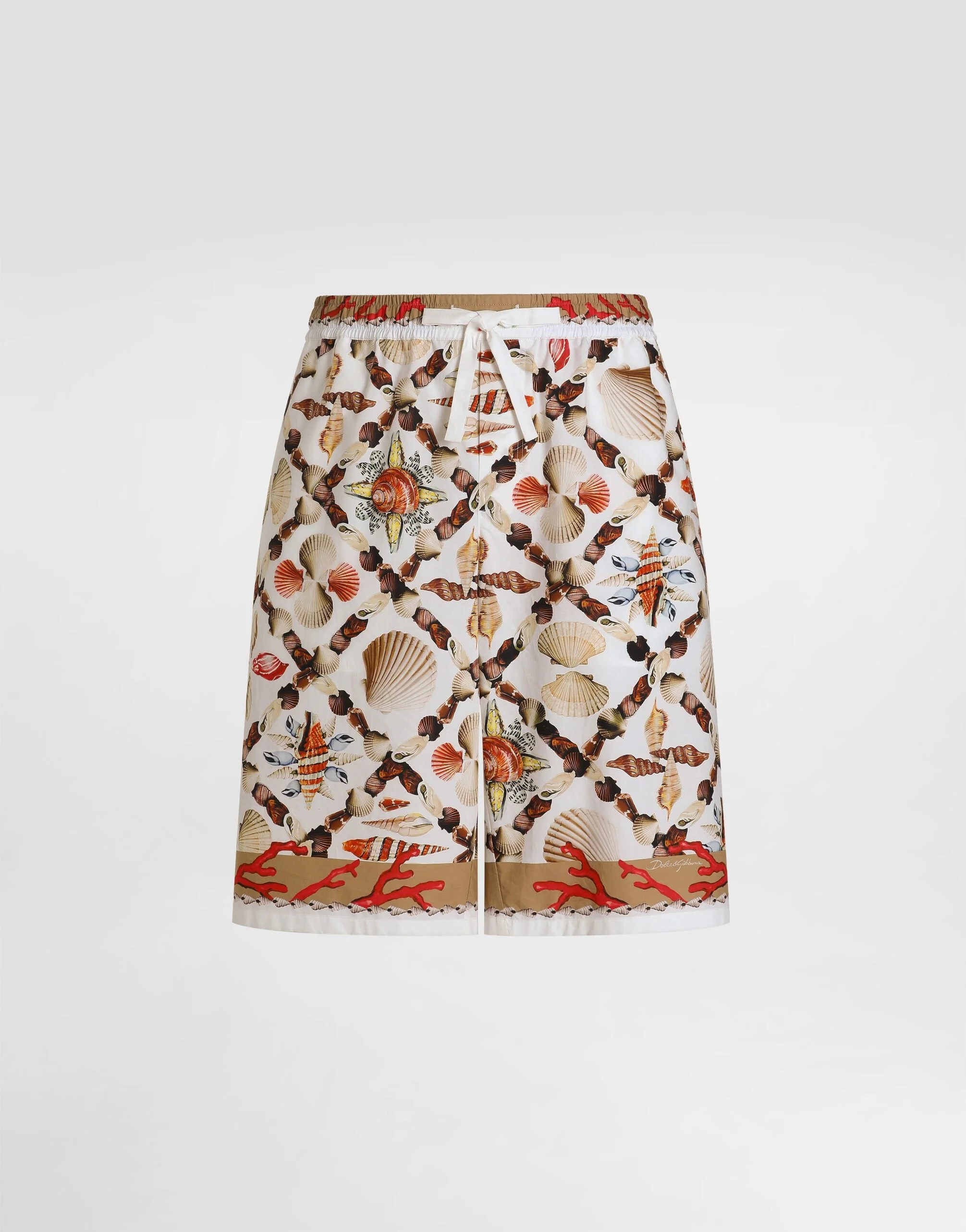 These trousers are a versatile and fashionable piece, perfect for adding a touch of casual elegance to your summer wardrobe. Made of lightweight poplin, it is ideal for warmer days. Shell-print poplin trousers • Multi-coloured • Belt with side slits • Right back pocket • Hip length 32 cm on size 48 IT • The model is 185 cm tall and wears a size 48 IT • Made in Italy The difference in the print placement that you may find on this product is a feature of Dolce&Gabbana’s “Handmade” pieces. A detail that makes every garment or accessory unique and exclusive. External Composition: 100% Cotton
