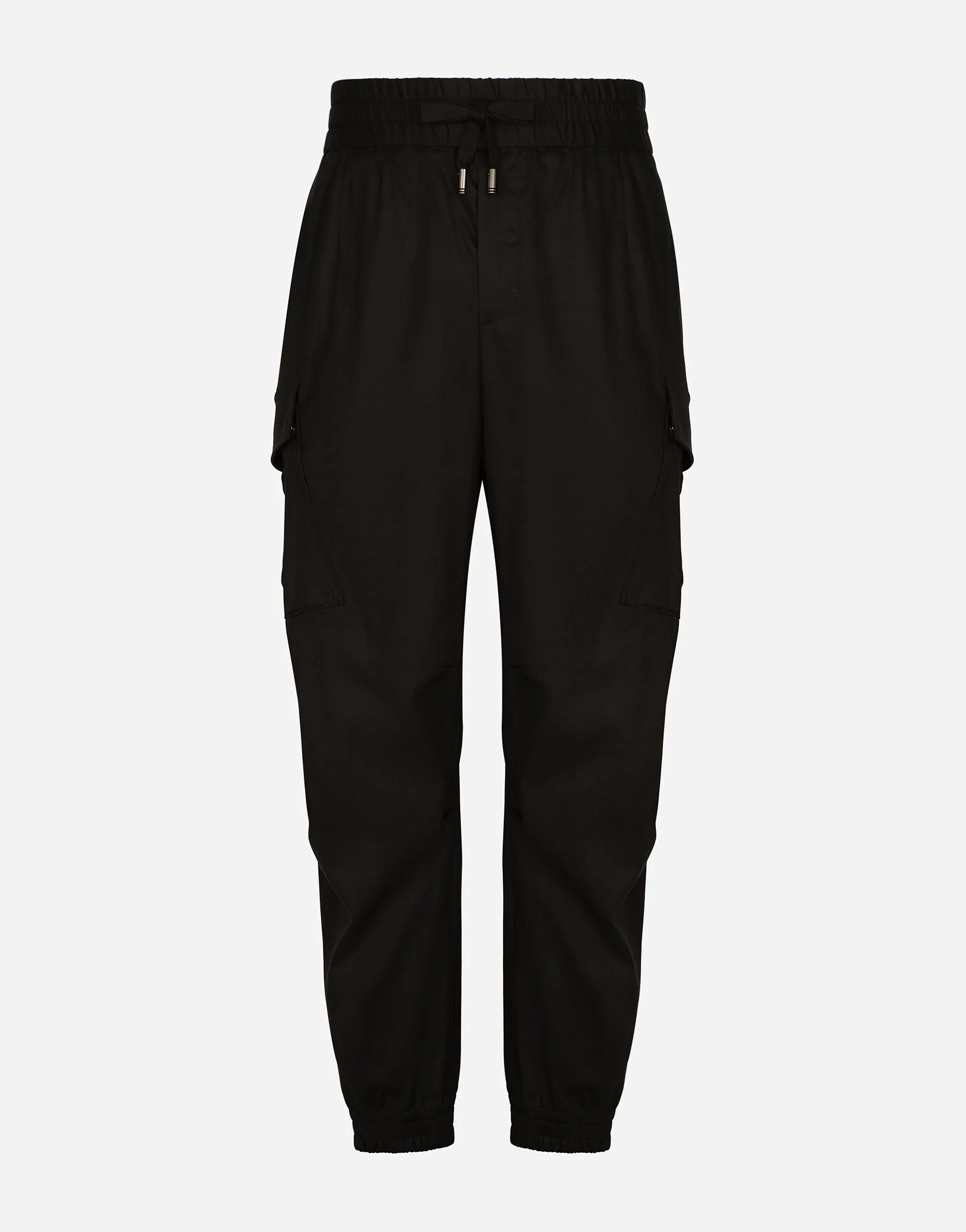Stretch cotton cargo jogging pants with a metal tag featuring the Dolce&Gabbana logo: • Regular fit • Stretch waistband with drawstring and branded metal aglets • Front slant pockets and zipped welt pockets on the back • Large side pockets with buttons • Stretch ankle cuffs • The item measures 105 cm on the outer leg on a size IT 48 • The model is 185 cm tall and wears a size IT 48 • Made in Italy Care And Details External composition: 97% Cotton 3% Spandex