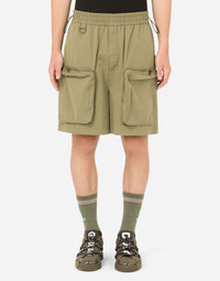 In the “Reborn to Live” Collection, the signature details of natural mimesis take on new forms and new interpretations. Everything has been reworked and given a contemporary twist with a sporty aesthetic, where different contrasting styles merge to convey a clear message of joy and positivity. Cotton cargo shorts: • Regular fit • Stretch waistband with drawstring and adjustable side tabs • Fly-covered zipper fastening • Front slant pockets and zipped welt pockets at the back • Front patch pockets • The crotch measures 28 cm - 11 inches and the hem is 38.5 cm - 15.2 inches wide on a size IT 48 • The item measures 52 cm - 20.5 inches on the outer leg on a size IT 48 • The model is 185 cm - 72.8 inches tall and wears a size IT 48 • Made in Italy Care And Details External composition: 95% Cotton 5% Polyamide