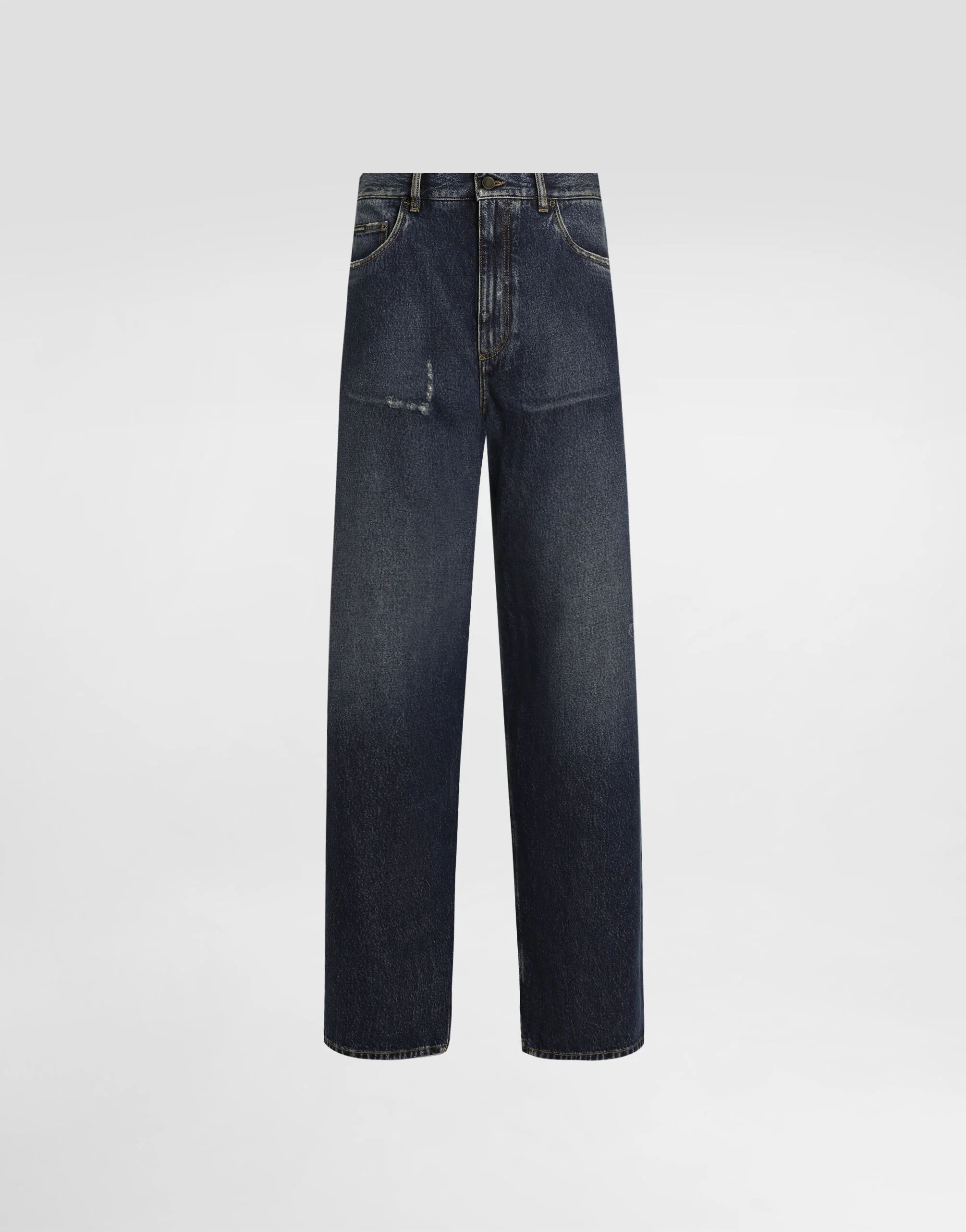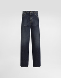 The scene is set for Dolce&Gabbana's distinctive and iconic aesthetic codes in the Collection from Men's Fall/Winter 2025 Fashion Show. The evening lights up with radiant brooches and is enriched with classic suits and blazers of timeless elegance. These denim trousers represent the perfect balance between casual style and comfort, ideal for the modern man who likes to stand out with a touch of class. Cotton denim trousers: • Multi-colored • Oversize fit • The model is 185 cm tall and wears a size 48 IT • Made in Italy External Composition: 100% Cotton