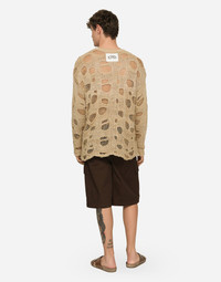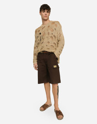 Cotton gabardine cargo Bermuda shorts with elasticated rear waistband and metal Dolce&Gabbana logo plate: • Brown • Regular fit • Belt loops on the waist • Fly-covered zipper and button fastening • Front slant pockets and buttoned welt pockets at the back • Large side pockets • The item measures 52 cm on the outer leg and the hem is 30 cm wide on a size IT 48 • The model is 185 cm tall and wears a size IT 48 • Made in Italy Care And Details External composition: 100% Cotton