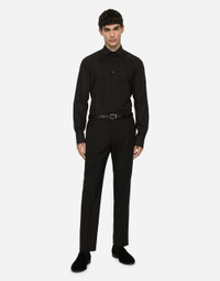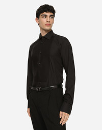 Cotton piqué tuxedo shirt with shirt front detail: • Slim Gold fit • Kent collar • Long sleeves • Button fastenings • Rear box pleat and yoke • Darts down the back • The piece measures 80 cm from the rear collar seam on a size IT 40 • The model is 185 cm tall and wears a size IT 40 • Made in Italy Care And Details External composition: 100% Cotton