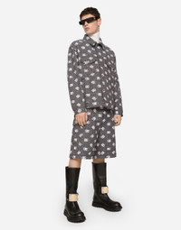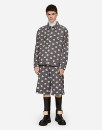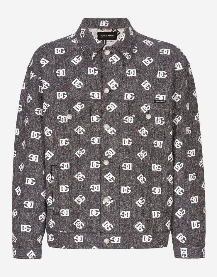 This denim-effect cotton jacket features the all-over DG jacquard logo with the metal Dolce&Gabbana logo tag. • Regular fit • Branded metal buttons on the front • Pockets with buttons and fabric label with Dolce&Gabbana logo • Adjustable details on the hem • The piece measures 68 cm from the rear collar seam on a size IT 48 • The model is 185 cm tall and wears a size IT 48 • Made in Italy Care And Details External composition: 100% Cotton