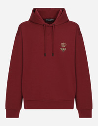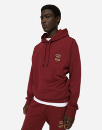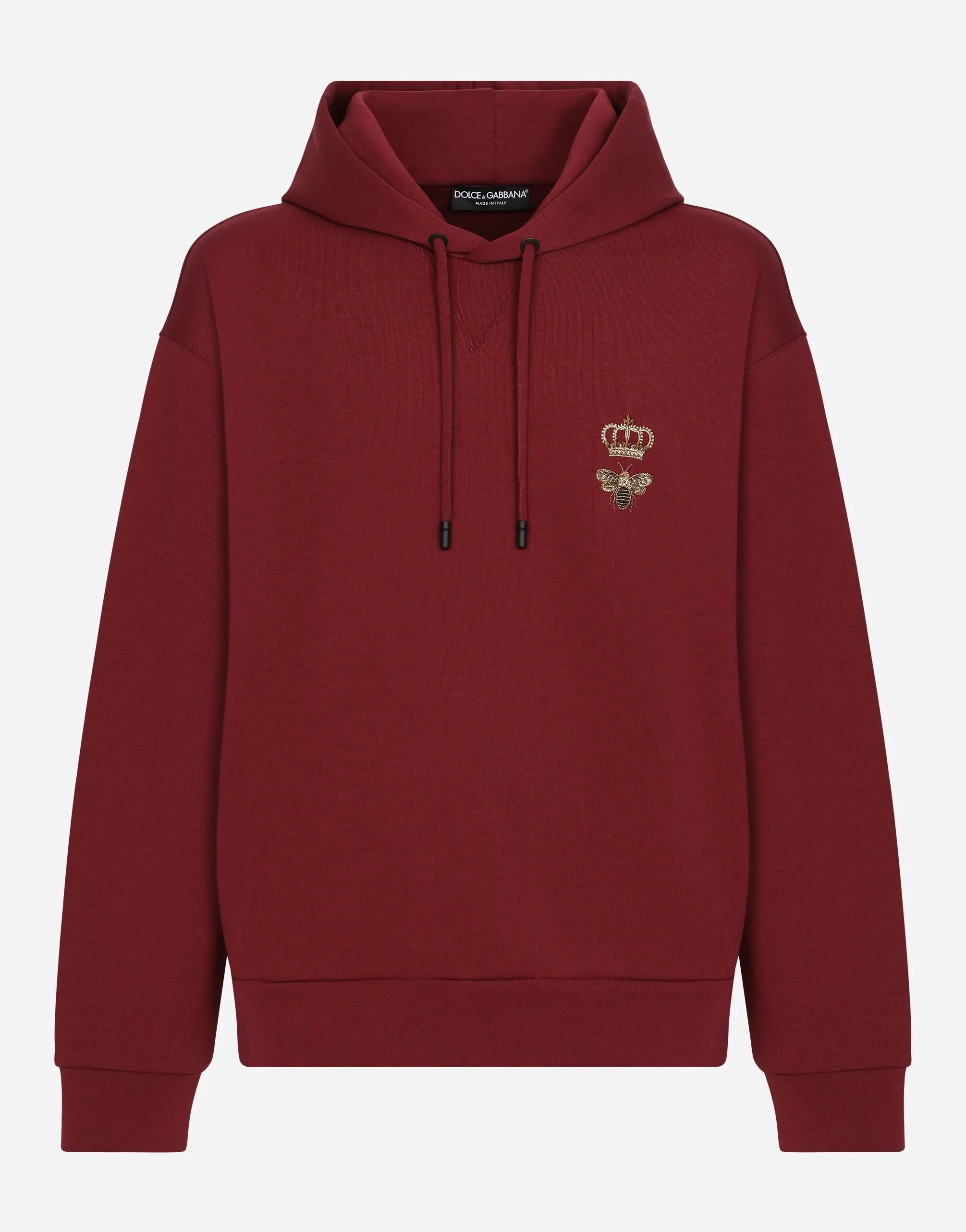 Technical cotton jersey hoodie with lurex embroidery: • Burgundy •Regular fit •Drawstring hood with branded metal aglets •Stretch knit hem and cuffs •The piece measures 69 cm from the rear collar seam on a size IT 48 •The model is 185 cm tall and wears a size IT 48 •Made in Italy Care And Details External composition: 71% Cotton 29% Polyester