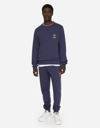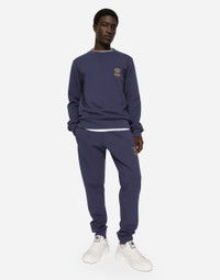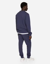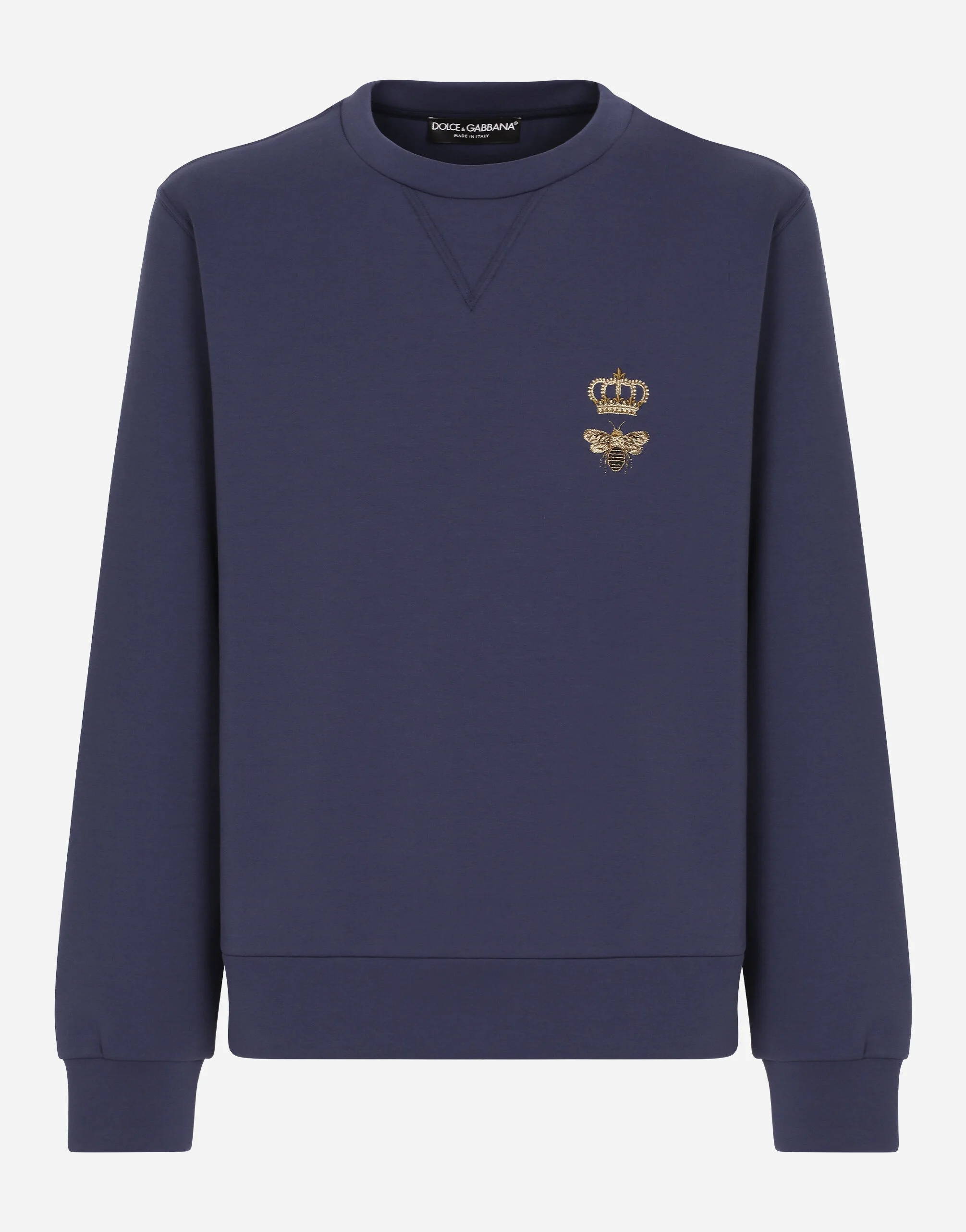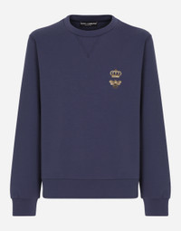 Technical cotton jersey round-neck sweatshirt with lurex embroidery: • Blue •Regular fit •Stretch knit hem, neck and cuffs •The piece measures 68 cm from the rear collar seam on a size IT 48 •The model is 185 cm tall and wears a size IT 48 •Made in Italy Care And Details External composition: 77% Cotton 23% Polyester