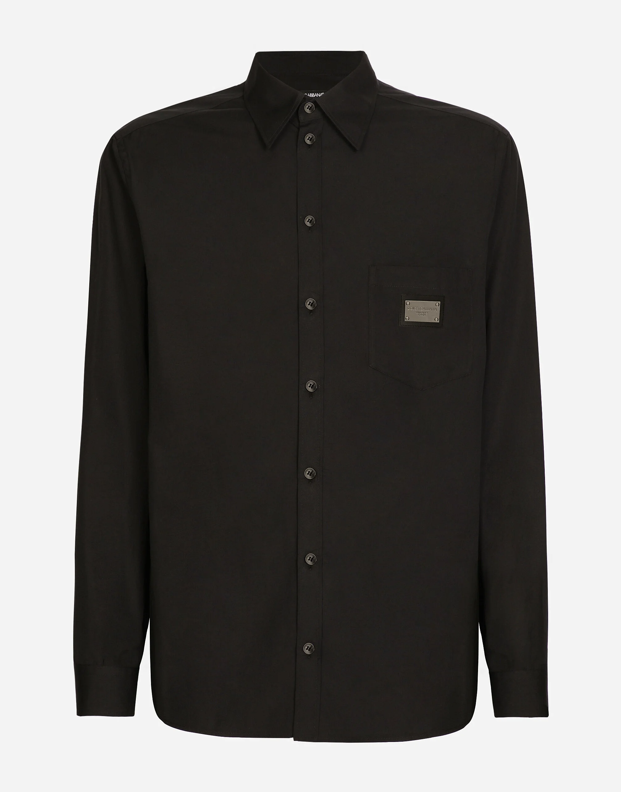 Tailored cotton shirt with a metal Dolce&Gabbana logo tag: • Regular Martini fit • Kent collar • Long sleeves • Button fastenings • Patch pocket • Rear yoke with inverted pleat on hem • The piece measures 75.5 cm from the rear collar seam on a size IT 40 • The model is 185 cm tall and wears a size IT 40 • Made in Italy Care And Details External composition: 100% Cotton
