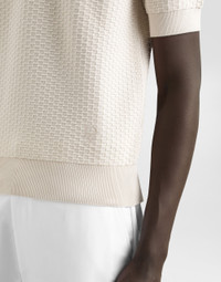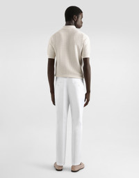 The Italian Holiday Men's Collection revisits 1950s style with a blend of relaxed fits and modern flair. Classic white shirts and tailored suits in refined fabrics contrast with casual denim and playful T-shirts featuring retro graphics with a futuristic twist. Bold prints—chessboards, cats, elegant lighters, and Mediterranean blue ribbons—alongside logo jacquard inspired by ties, infuse a contemporary edge into the essence of Italian holidays. Cotton polo-shirt with tonal DG logo embroidery: • Beige • Regular fit • Button fastenings • Short sleeves • Fine-rib neck, sleeve trims and hem • 14-gauge knit • The piece measures 68 cm from the shoulder seam on a size IT 48 • Made in Italy External composition: 100% Cotton