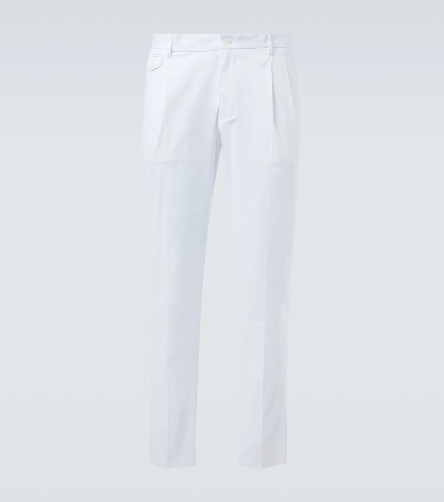 Sicilian culture is at the heart of Dolce&Gabbana's aesthetic, which attributes most of its bold styles to its Italian heritage. These pants are cut from cotton into a straight-leg silhouette. Product Details - Material: 98% cotton, 2% elastane - Care instructions: dry clean - Made in Italy - Designer color name: Bianco - Item color: white - Embroidery: 100% polyester - Item number: P01077042 Size & Fit - True to size - Elasticated waist - Slightly stretchy fabric - Straight leg - Unhemmed for tailoring - Height of model is 188cm-74" and wears a size 50