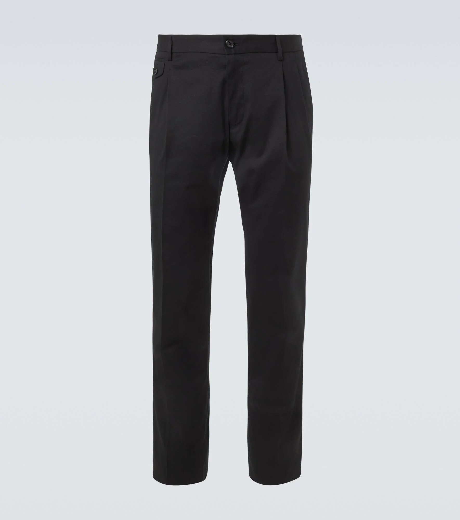 Sicilian culture is at the heart of Dolce&Gabbana's aesthetic, which attributes most of its bold styles to its Italian heritage. These pants are cut from cotton into a straight-leg silhouette. Product Details - Material: 98% cotton, 2% elastane - Care instructions: dry clean - Made in Italy - Designer color name: Nero - Item color: black - Elasticated waistband - Closure: zipper fly, button fastening - Pockets: side slit pockets, back pockets - Item number: P01077041 Size & Fit - True to size - Elasticated waist - Slightly stretchy fabric - Slim-leg - Unhemmed for tailoring - The model in the picture is 185cm-6'1" and wearing a size 50