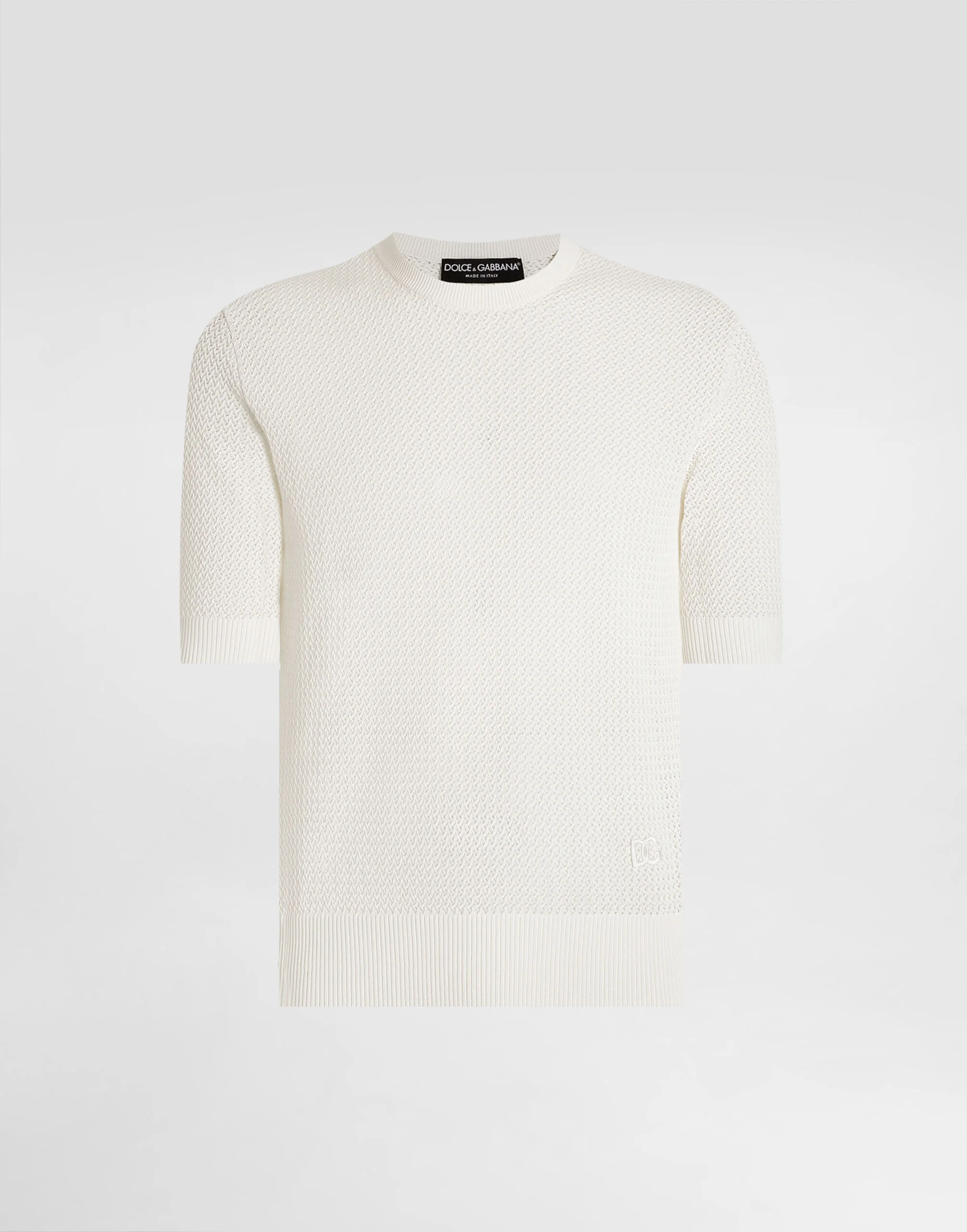 This crewneck pullover is a men's wardrobe essential, perfect for a casual yet refined look. Micro-pattern cotton crewneck pullover: • White • Crew neck • Sleeves • Bottom width 64 cm on size 48 IT • The model is 185 cm tall and wears a size 48 IT • Made in Italy External Composition: 100% Cotton