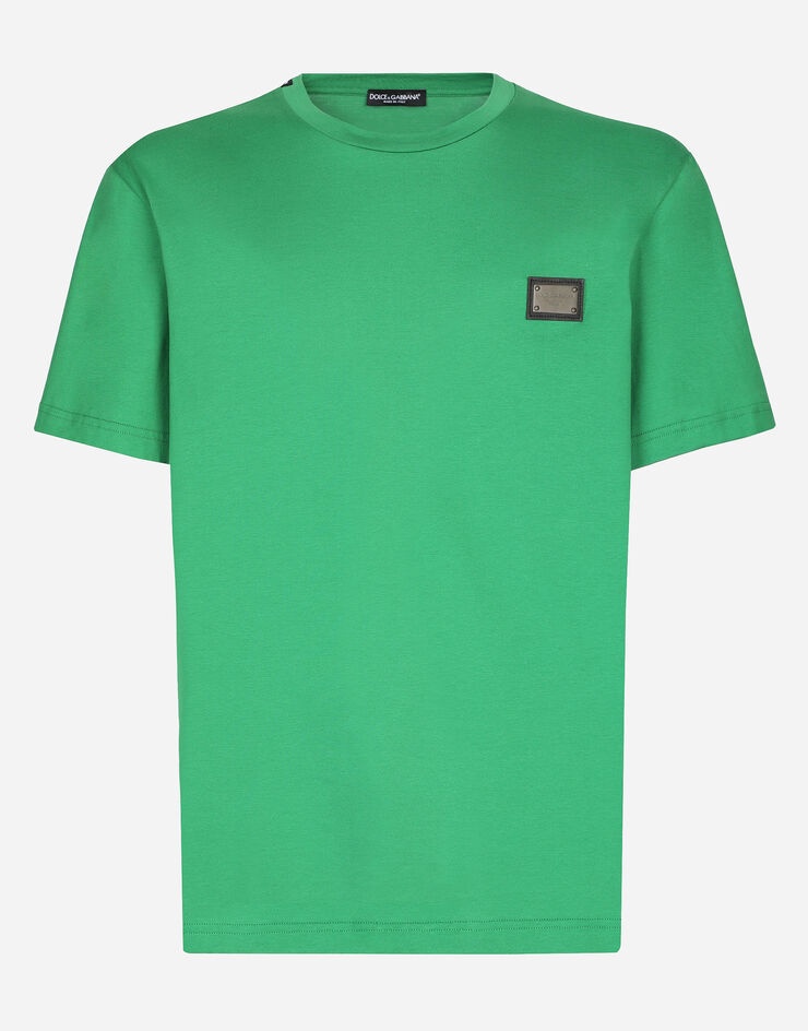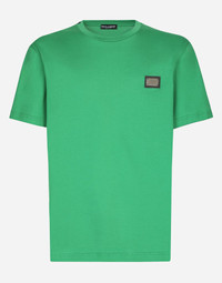 Cotton jersey T-shirt with metal tag featuring the Dolce&Gabbana logo: • Green •Regular fit •Round neck • Short sleeves •The piece measures 72 cm from the rear collar seam on a size IT 48 •The model is 185 cm tall and wears a size IT 48 •Made in Italy Care And Details External composition: 100% Cotton