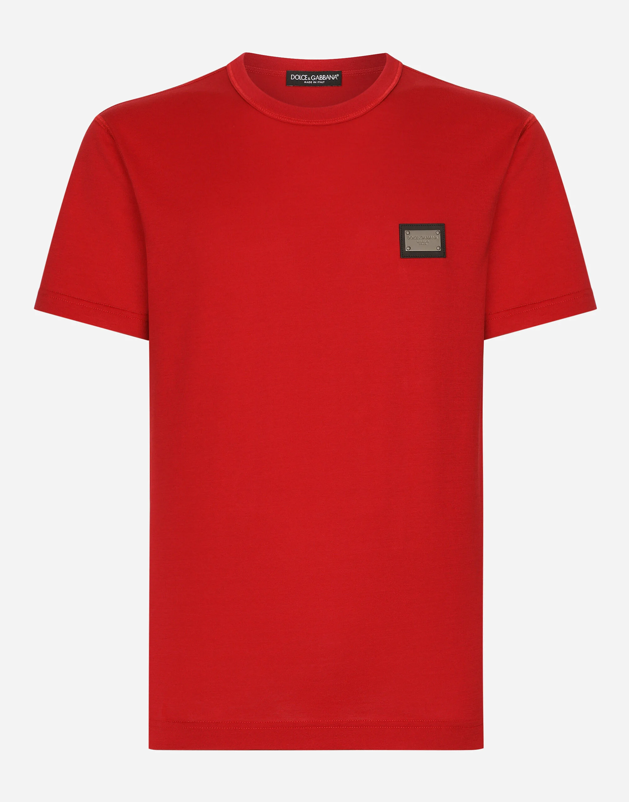 Cotton jersey T-shirt with metal tag featuring the Dolce&Gabbana logo: • Red •Regular fit •Round neck • Short sleeves •The piece measures 72 cm from the rear collar seam on a size IT 48 •The model is 185 cm tall and wears a size IT 48 •Made in Italy Care And Details External composition: 100% Cotton